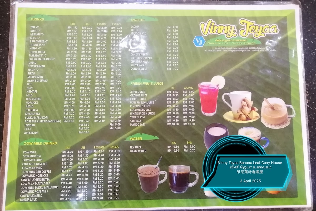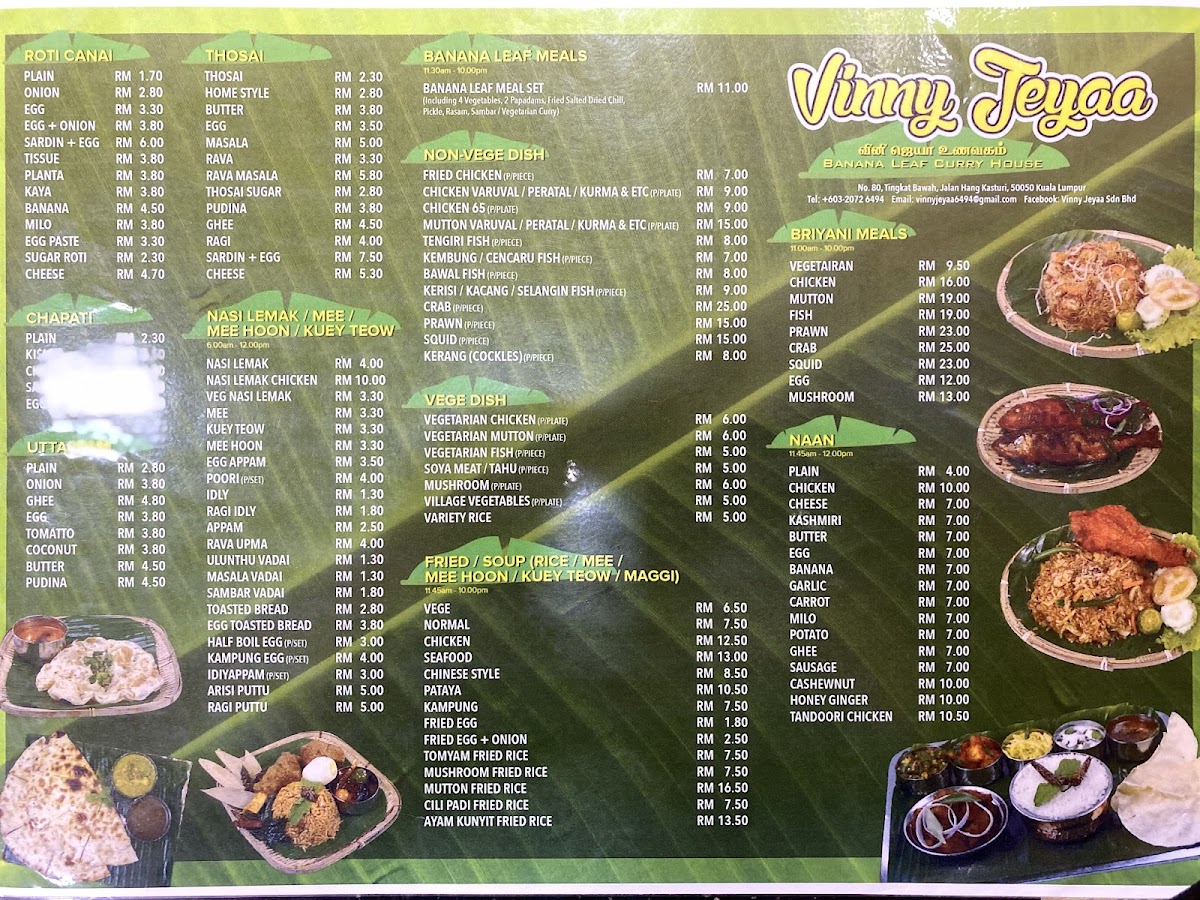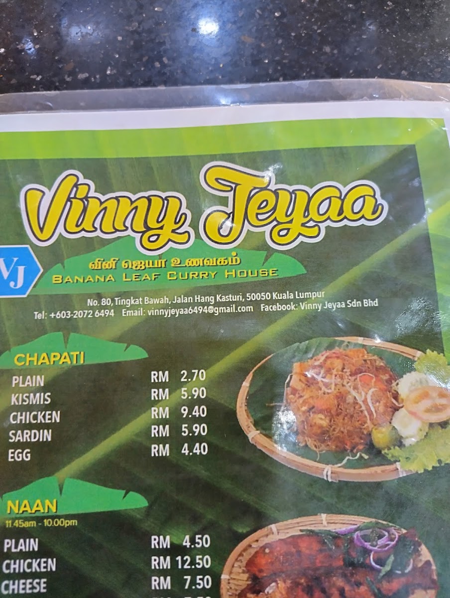 Diners rave about the flavorful, vegetarian-friendly options and the savory Kerala specialties, with many patrons highlighting the egg onion dosa and various biryanis as must-tries. Guests can enjoy cold beverages, including salted lassi, amid a welcoming and airy atmosphere. With its accessible location near the Pasar Seni MRT station, Vinny Jeyaa stands out as a cherished culinary gem for locals and international travelers alike.